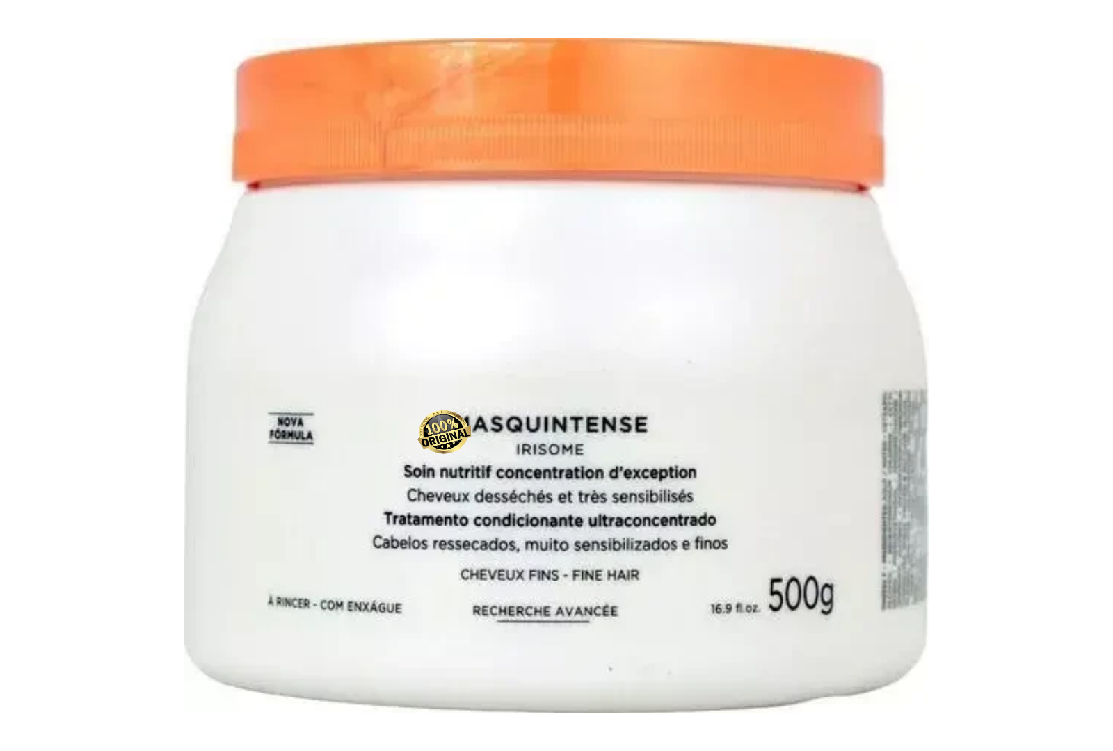 Após usar o Bain Satin adequado, aplique uma quantidade de máscara Masquintense para cabelos finos, mecha por mecha, nos cabelos torcidos;